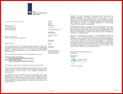 ? ? ? 近日,博奧晶典聯(lián)合清華大學(xué)成功研發(fā)的由新型冠狀病毒2019-nCoV核酸檢測(cè)試劑盒(全集成碟式芯片法),英文名稱:SARS-CoV-2 Nucleic Acid Detection Kit (Integrated Isothermal Amplification Chip Method)和全自動(dòng)核酸分析儀,英文名稱:Automatic Nucleic Acid Analyzer組成的全集成芯片實(shí)驗(yàn)室系統(tǒng)獲CE準(zhǔn)入資質(zhì)(證書(shū)號(hào):NL-CA002-2021-55957和NL-CA002-2021-55450),獲CE準(zhǔn)入資質(zhì)表明該產(chǎn)品符合歐盟醫(yī)療器械相關(guān)指令的符合性要求,具備歐盟市場(chǎng)的準(zhǔn)入條件,將為歐洲地區(qū)的新冠疫情防控工作提供高靈敏度全集成快速檢測(cè)工具。