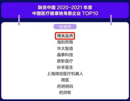 本次評(píng)選中獲得2020-2021年度中國(guó)醫(yī)療健康獨(dú)角獸企業(yè)TOP10的榮譽(yù),進(jìn)一步力證了博奧晶典在生命科學(xué)領(lǐng)域的發(fā)展?jié)摿?,也再次顯示了業(yè)界對(duì)博奧晶典的關(guān)注與肯定。