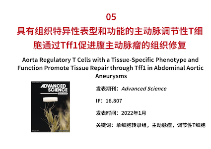 除了維持免疫耐受外,F(xiàn)oxp3+ 調(diào)節(jié)性 T 細胞 (Tregs) 在組織穩(wěn)態(tài)和重塑中發(fā)揮特殊作用。然而,動脈瘤中的 Tregs 是否具有組織特異性的表型和功能尚不清楚。本研究中發(fā)現(xiàn)了一組特殊的可能抑制腹主動脈瘤(AAA)進展的 Tregs,并對其進行了功能表征。主動脈 Tregs 在 AAA 進展中逐漸增加,主要來自外周循環(huán)。單細胞 TCR 測序和批量 RNA 測序顯示了它們獨特的表型和高表達 Tff1。利用 Foxp3cre/creTff1flox/flox小鼠研究 AAA 中 Tff1 的作用,發(fā)現(xiàn)主動脈 Tregs 分泌 Tff1 以調(diào)節(jié)平滑肌細胞 (SMC) 的存活。體外實驗證實 Tff1 通過細胞外信號調(diào)節(jié)激酶(ERK)1/2途徑抑制平滑肌細胞凋亡。這些發(fā)現(xiàn)揭示了主動脈 Tregs 的組織特異性表型和功能,并可能為預(yù)防 AAA 提供一種有希望的新方法。