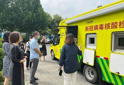 參觀(guān)過(guò)程中,博奧晶典工作人員向周惠會(huì)長(zhǎng)一行介紹了博奧晶典在生物芯片領(lǐng)域取得的累累碩果。其中,重點(diǎn)介紹了博奧晶典科技抗疫的標(biāo)志性成果——新冠病毒核酸檢測(cè)移動(dòng)實(shí)驗(yàn)室及搭載的全集成芯片實(shí)驗(yàn)室系統(tǒng),該系統(tǒng)在今年初憑借優(yōu)異的創(chuàng)新性能、為全國(guó)新冠肺炎疫情防控作出的突出貢獻(xiàn)以及推動(dòng)行業(yè)科技進(jìn)步的顯著成效,被評(píng)為“2021中國(guó)醫(yī)藥生物技術(shù)十大進(jìn)展”。