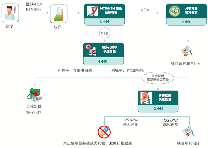采用雙重實(shí)時(shí)熒光PCR技術(shù)和TaqMan探針技術(shù)實(shí)現(xiàn)對結(jié)核分枝桿菌(MTB)和非結(jié)核分枝桿菌(NTM)的區(qū)分檢測。 該試劑盒是目前國內(nèi)唯一獲得CFDA認(rèn)證的可以快速區(qū)分結(jié)核分枝桿菌和非結(jié)核分枝桿菌感染的PCR產(chǎn)品。
